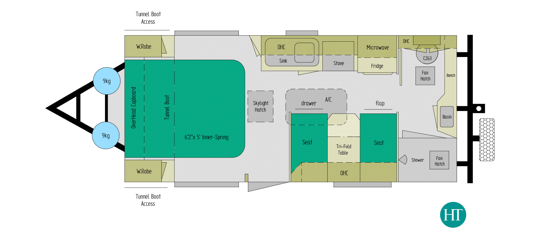 Wheels sized to suit tow vehicle (available for some vehicles) *