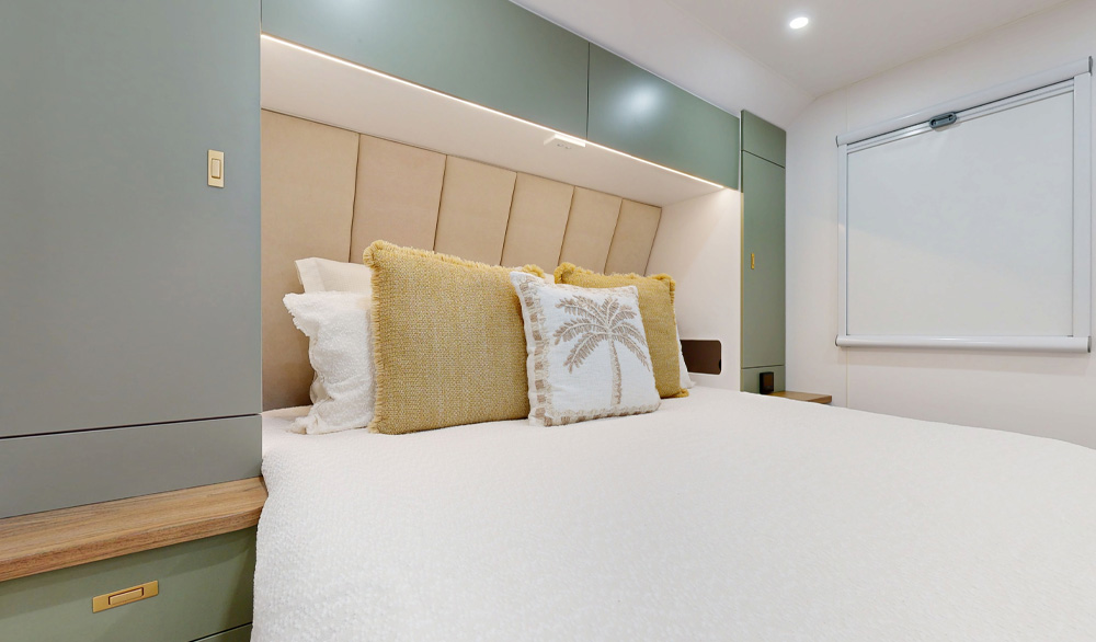 Born from a relentless drive for innovation, the GTX Platinum redefines off-road luxury and versatility. Engineered for maximum comfort and optimised storage, it brings the indulgence of home to even the most remote destinations. The GTX Platinum's distinctive design unlocks smarter configurations, redefines comfort, and delivers greater storage, all without compromise and while embracing full-height living throughout the entire caravan.